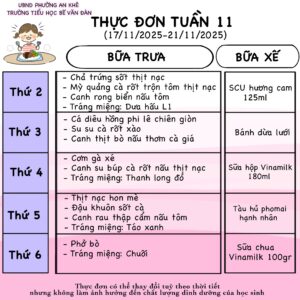 THÔNG BÁO: Thực đơn bán trú tuần 11