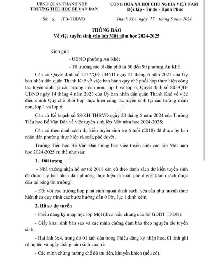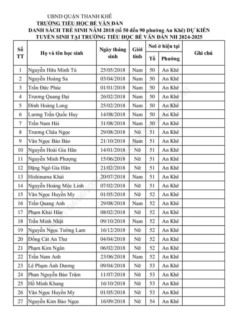 Danh sách tuyển sinh lớp 1 – Năm học 2024-2025 Đã đăng trên 7 Tháng 1, 20257 Tháng 1, 2025 bởi Biên tập Biên tập Không nên để trẻ quá tải Công khai các khoản thu chi ngân sách nhà nước năm 2022 và 2023