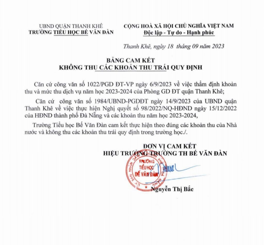 Thông Báo Bảng cam kết không thu các khoản trái quy định Đã đăng trên 7 Tháng 1, 20257 Tháng 1, 2025 bởi Biên tập Biên tập Công khai các khoản thu chi ngân sách nhà nước năm 2022 và 2023 Kế hoạch giãn thu các khoản thu năm học 2023-2024