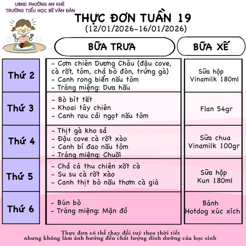 THÔNG BÁO: Thực đơn bán trú tuần 19 Đã đăng trên 12 Tháng 1, 202614 Tháng 1, 2026 bởi Biên tập Biên tập QUYẾT ĐỊNH Về việc công bố công khai dự toán ngân sách năm 2026 của Trường Tiểu học Bế Văn Đàn THÔNG BÁO: Thực đơn bán trú tuần 20