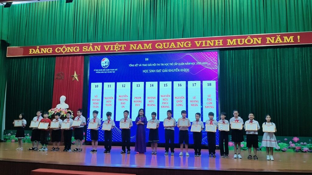 Sáng nay 16/3/2024, tại trung tâm hành chính quận Thanh Khê, phòng Giáo dục quận đã tổ chức khen thưởng cho các học sinh có thành tích trong hội thi Tin học trẻ cấp quận năm học 2023-2024.